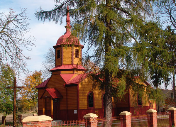 Drewniany Kościół p.w. Matki Bożej Królowej Polski.